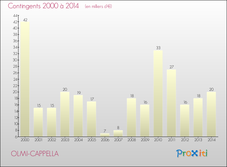 En 2014, à Olmi-Cappella, ce budget est en baisse de 7.67 % par rapport à 2013.
