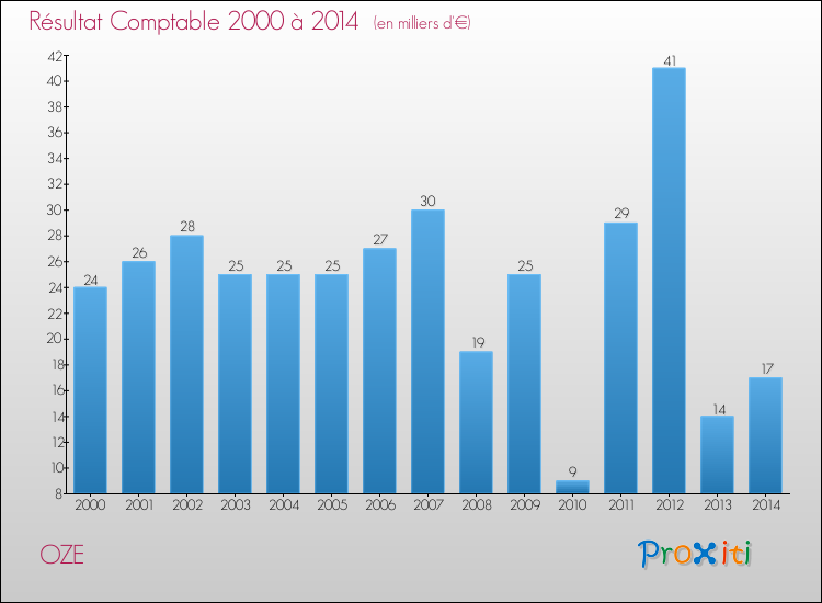 Le résultat comptable de la commune de Oze s'établissait ainsi à : + 17 000 € fin 2014.