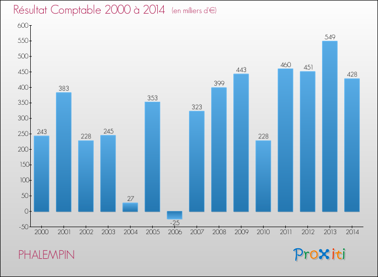 Le résultat comptable de la commune de Phalempin s'établissait ainsi à : + 428 000 € fin 2014.