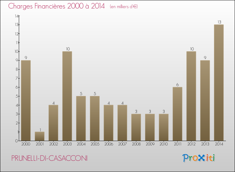 En 2014, à Prunelli-di-Casacconi, ce budget est en augmentation de 43.36 % par rapport à 2013.