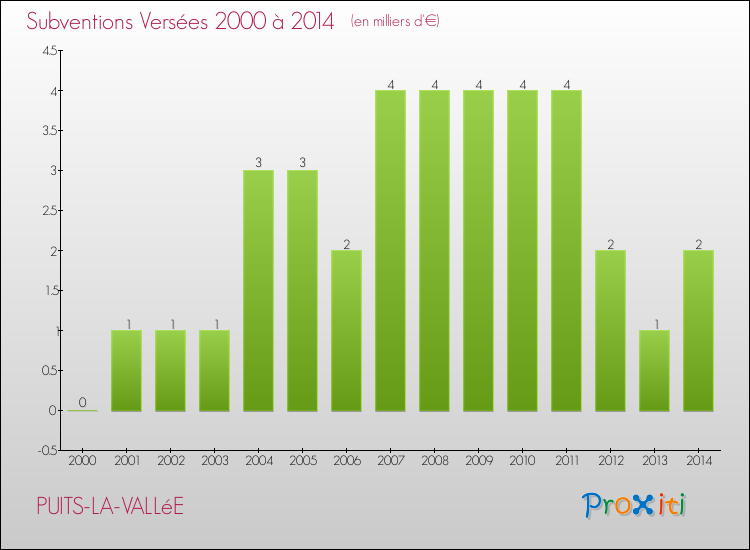 En 2014, à Puits-la-Vallée, ce budget est en baisse de 3.55 % par rapport à 2013.