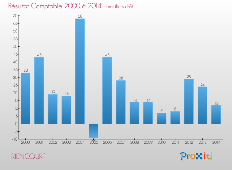 Le résultat comptable de la commune de Riencourt s'établissait ainsi à : + 12 000 € fin 2014.