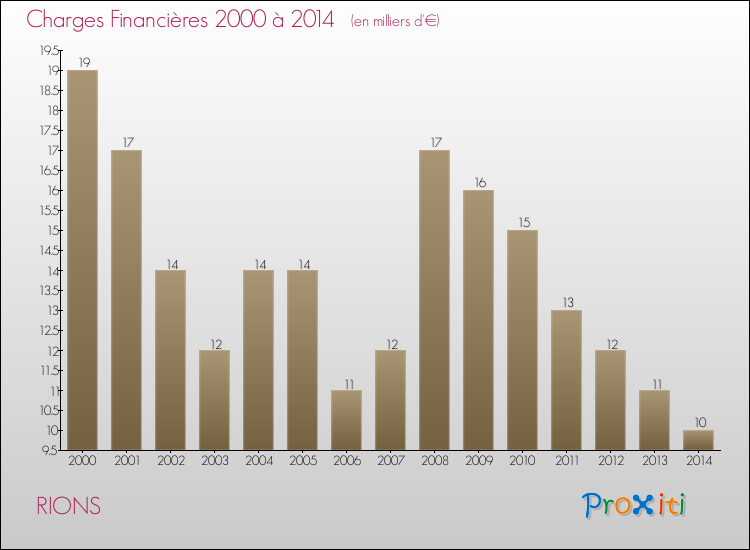 Evolution du résultat comptable pour RIONS de 2000 à 2014