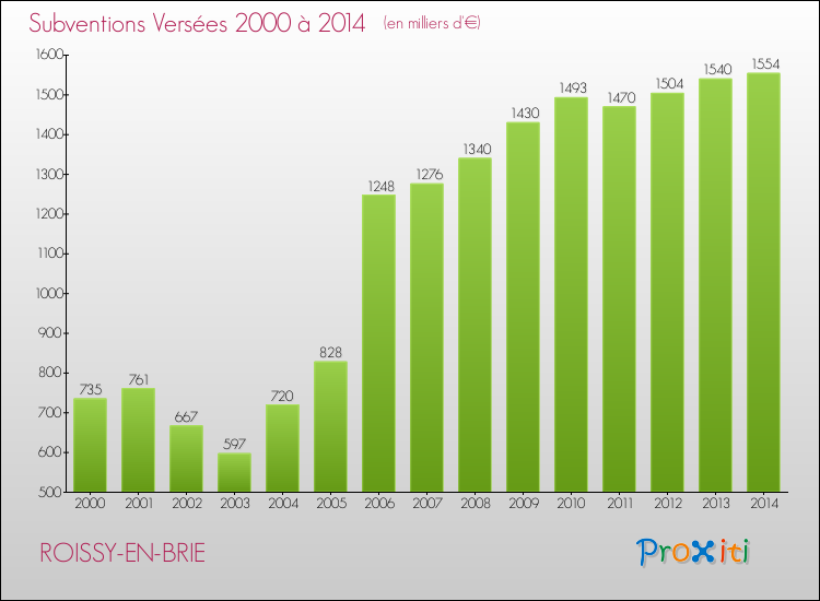 En 2014, à Roissy-en-Brie, ce budget est en baisse de 3.05 % par rapport à 2013.