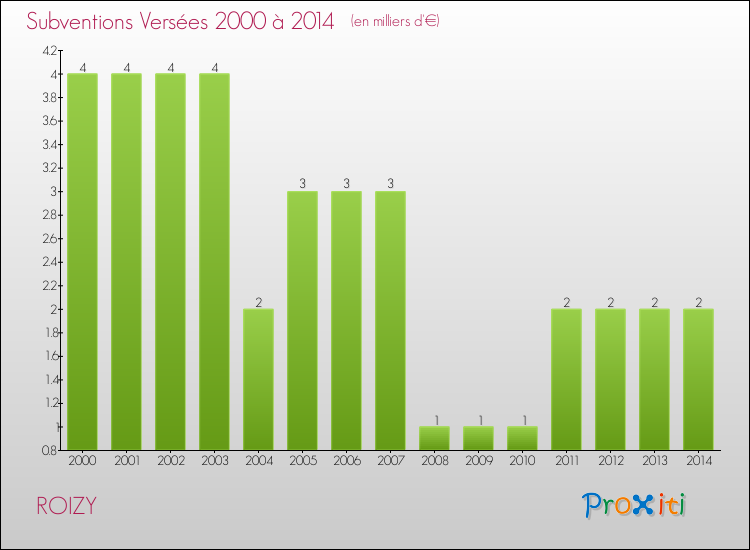 En 2014, à Roizy, ce budget est en augmentation de 174.42 % par rapport à 2013.