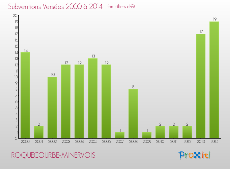 En 2014, à Roquecourbe-Minervois, ce budget est en augmentation de 7.38 % par rapport à 2013.
