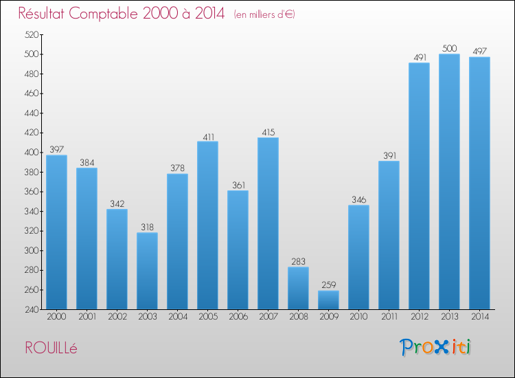 Le résultat comptable de la commune de Rouillé s'établissait ainsi à : + 497 000 € fin 2014.