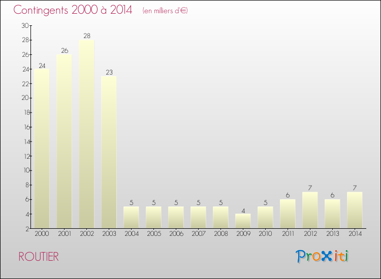 En 2014, à Routier, ce budget est en baisse de 11.26 % par rapport à 2013.