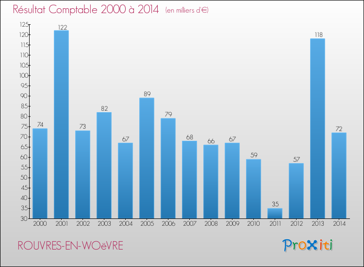 Le résultat comptable de la commune de Rouvres-en-Woëvre s'établissait ainsi à : + 72 000 € fin 2014.
