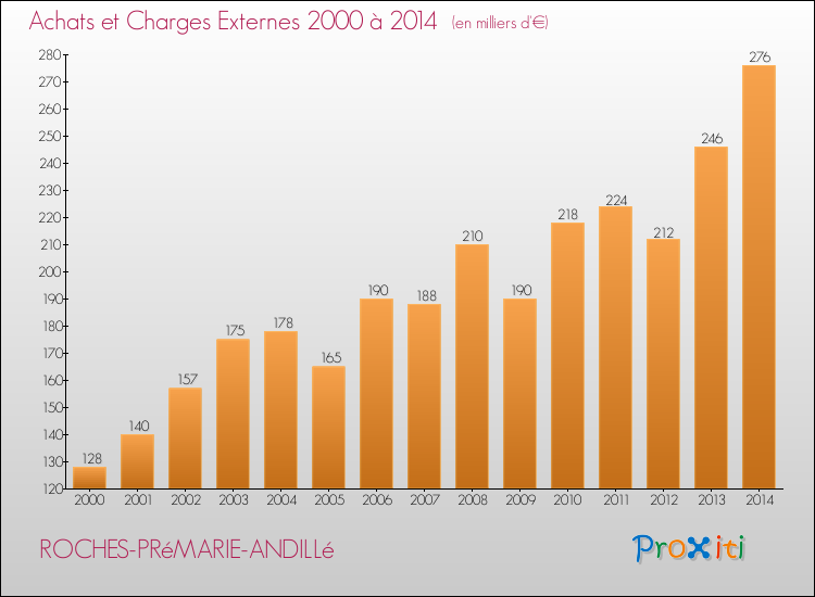 En 2014, à Roches-Prémarie-Andillé, ce budget est en augmentation de 4.61 % par rapport à 2013.