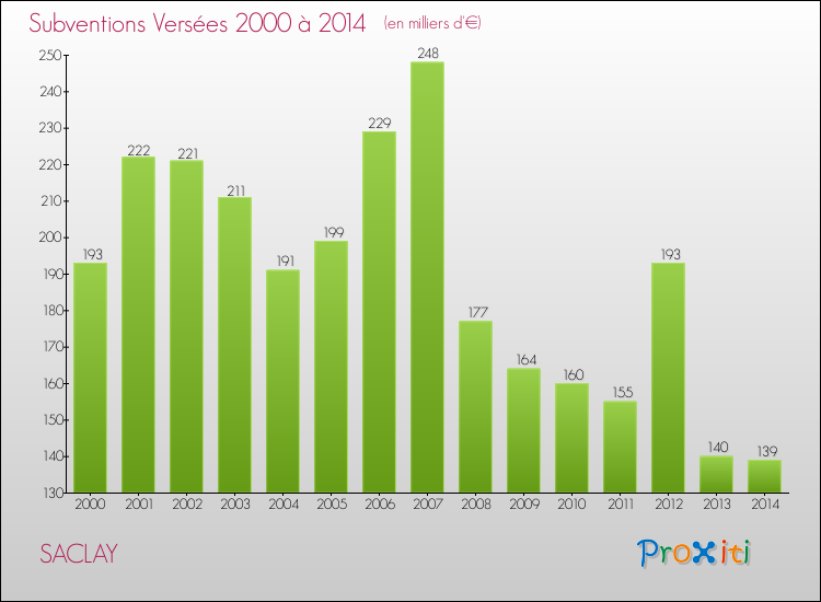 En 2014, à Saclay, ce budget est en baisse de 0.41 % par rapport à 2013.