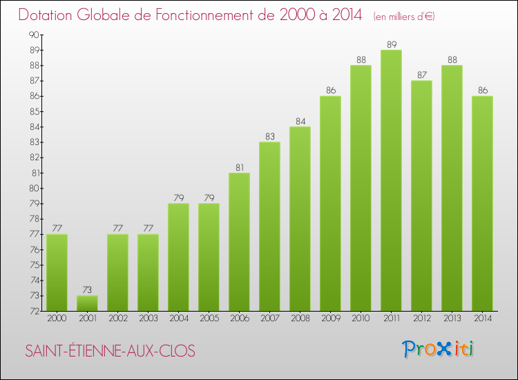 En 2014, à Saint-Étienne-aux-Clos, ce budget est en augmentation de 22.7 % par rapport à 2013.
