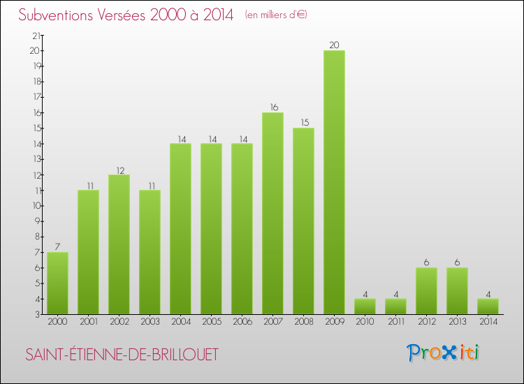En 2014, à Saint-Étienne-de-Brillouet, ce budget est en augmentation de 13.54 % par rapport à 2013.
