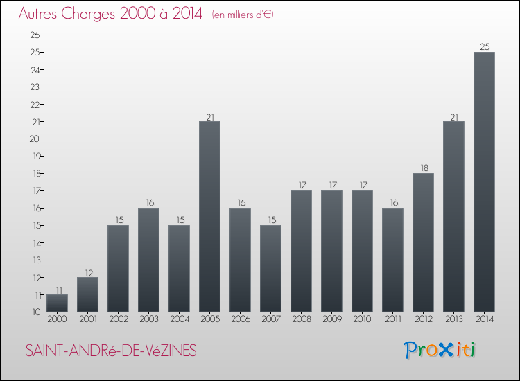 En 2014, à Saint-André-de-Vézines, ce budget est en baisse de 14.29 % par rapport à 2013.