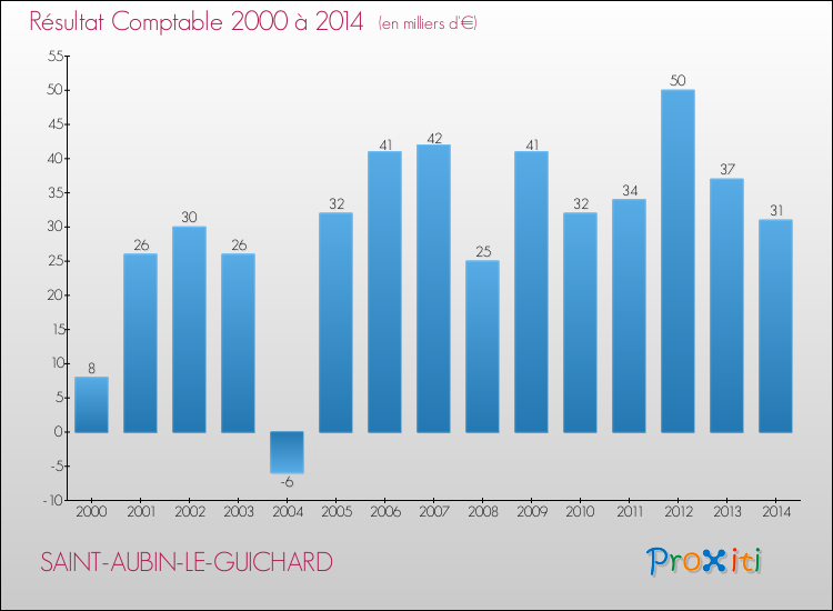 Le résultat comptable de la commune de Saint-Aubin-le-Guichard s'établissait ainsi à : + 31 000 € fin 2014.