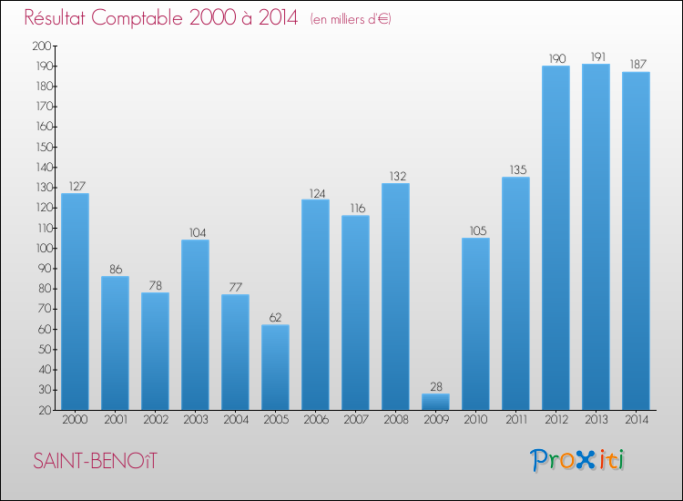 Le résultat comptable de la commune de Saint-Benoît s'établissait ainsi à : + 187 000 € fin 2014.