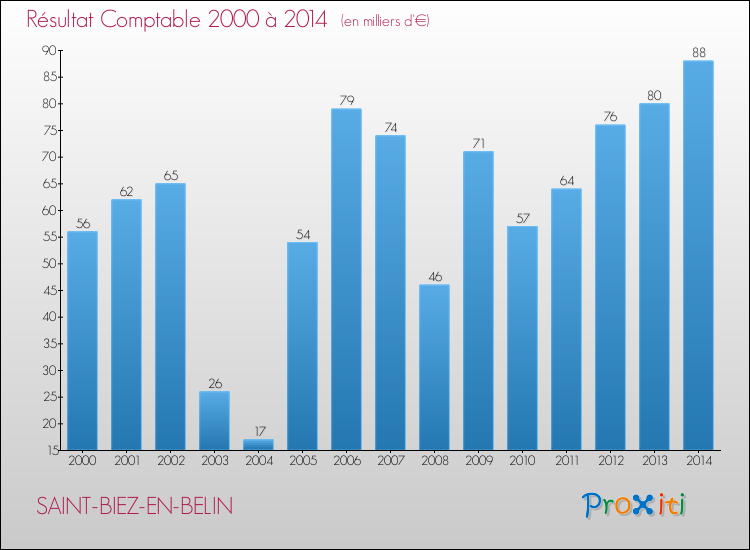 Le résultat comptable de la commune de Saint-Biez-en-Belin s'établissait ainsi à : + 88 000 € fin 2014.