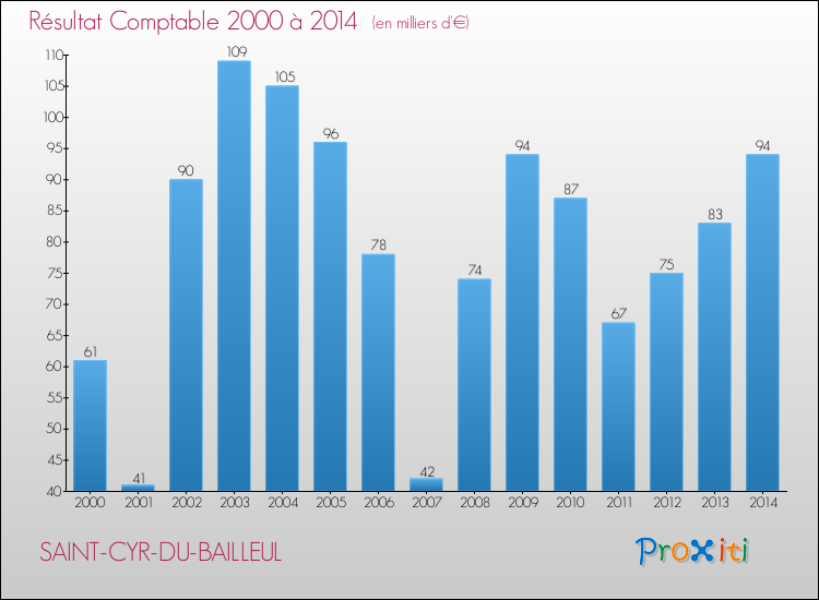 Le résultat comptable de la commune de Saint-Cyr-du-Bailleul s'établissait ainsi à : + 94 000 € fin 2014.