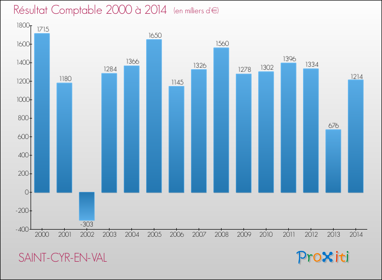 Le résultat comptable de la commune de Saint-Cyr-en-Val s'établissait ainsi à : + 1 214 000 € fin 2014.