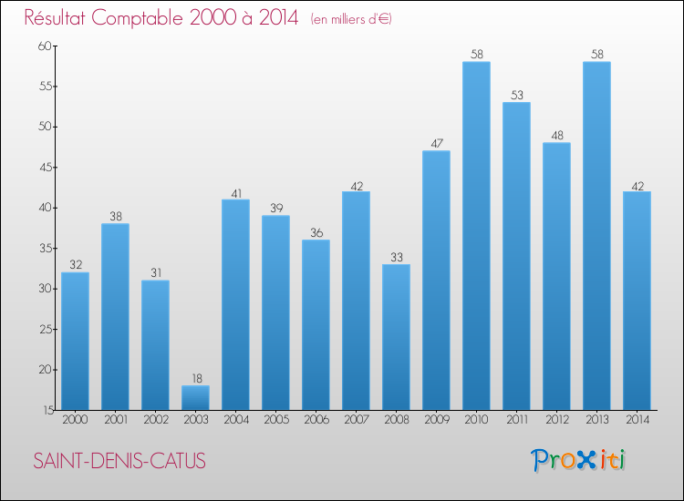 Le résultat comptable de la commune de Saint-Denis-Catus s'établissait ainsi à : + 42 000 € fin 2014.