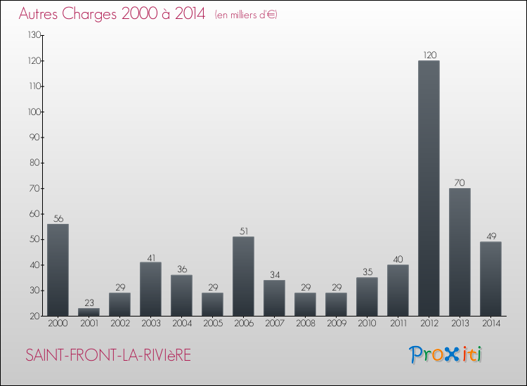 En 2014, à Saint-Front-la-Rivière, ce budget est en baisse de 8.55 % par rapport à 2013.