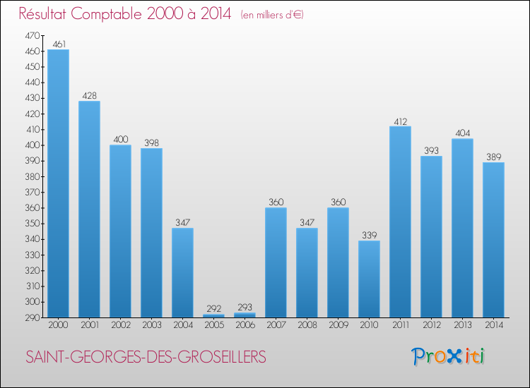 Le résultat comptable de la commune de Saint-Georges-des-Groseillers s'établissait ainsi à : + 389 000 € fin 2014.