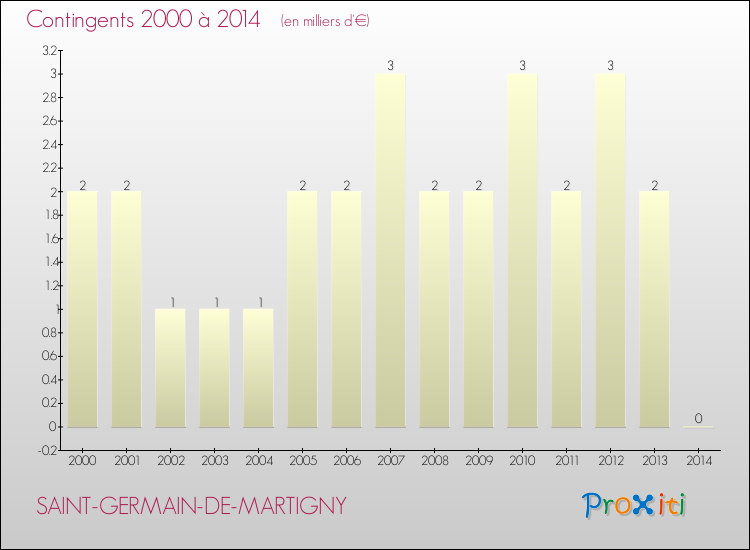 En 2014, à Saint-Germain-de-Martigny, ce budget est en baisse de 1.47 % par rapport à 2013.