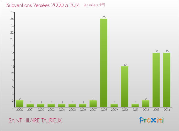 En 2014, à Saint-Hilaire-Taurieux, ce budget est en augmentation de 2.78 % par rapport à 2013.