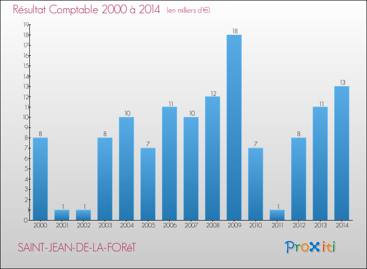 Le résultat comptable de la commune de Saint-Jean-de-la-Forêt s'établissait ainsi à : + 13 000 € fin 2014.