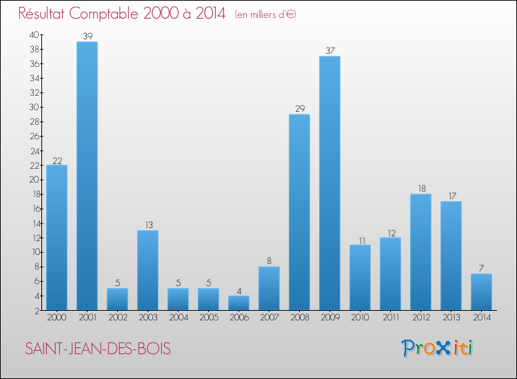 Le résultat comptable de la commune de Saint-Jean-des-Bois s'établissait ainsi à : + 7 000 € fin 2014.