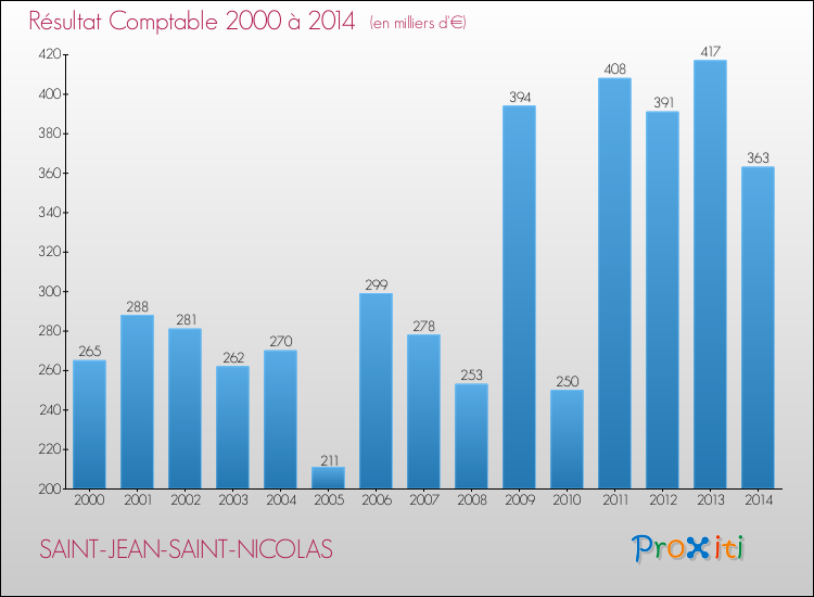 Le résultat comptable de la commune de Saint-Jean-Saint-Nicolas s'établissait ainsi à : + 363 000 € fin 2014.