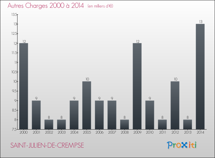 En 2014, à Saint-Julien-de-Crempse, ce budget est en augmentation de 5.69 % par rapport à 2013.