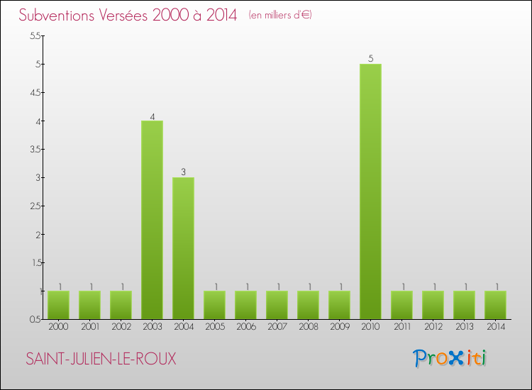 En 2014, à Saint-Julien-le-Roux, ce budget est en baisse de 3.45 % par rapport à 2013.