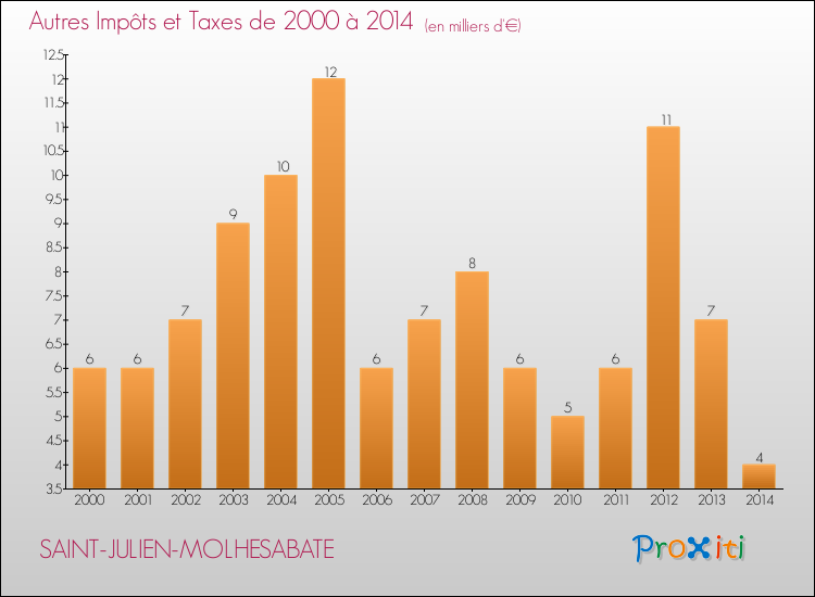 En 2014, à Saint-Julien-Molhesabate, ce budget est en baisse de 16.05 % par rapport à 2013.