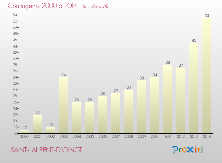 En 2014, à Saint-Laurent-d'Oingt, ce budget est en baisse de 6.24 % par rapport à 2013.