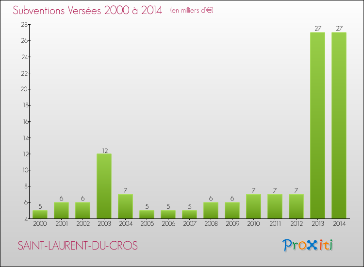 En 2014, à Saint-Laurent-du-Cros, ce budget est en baisse de 0.84 % par rapport à 2013.