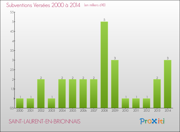 En 2014, à Saint-Laurent-en-Brionnais, ce budget est en baisse de 3.29 % par rapport à 2013.