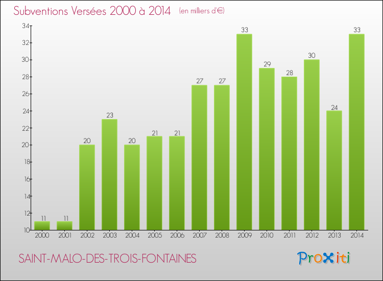 En 2014, à Saint-Malo-des-Trois-Fontaines, ce budget est en baisse de 8.84 % par rapport à 2013.