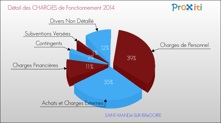 En 2014, les charges de fonctionnement de la commune de Saint-Mandé-sur-Brédoire étaient de : 141 000 €