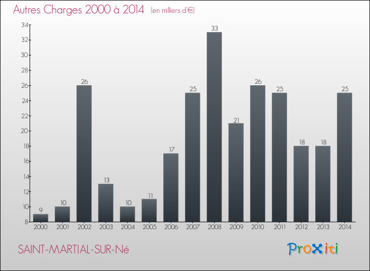 En 2014, à Saint-Martial-sur-Né, ce budget est en augmentation de 1.54 % par rapport à 2013.