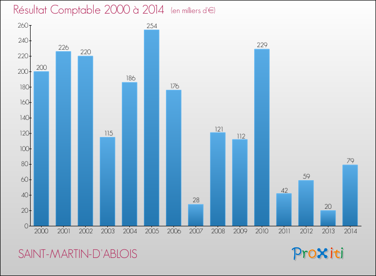 Le résultat comptable de la commune de Saint-Martin-d'Ablois s'établissait ainsi à : + 79 000 € fin 2014.