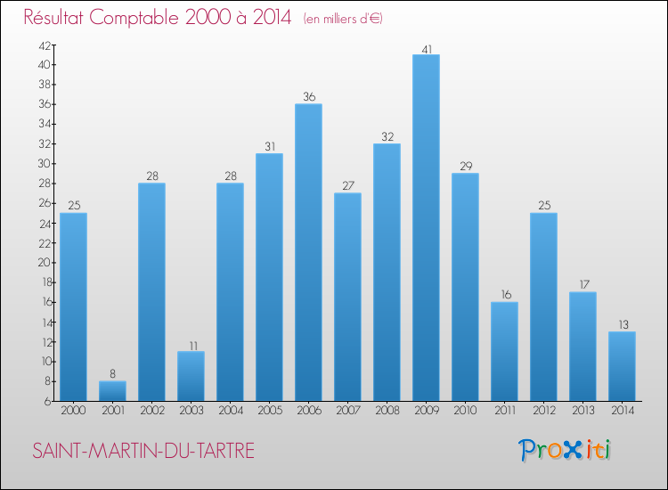 Le résultat comptable de la commune de Saint-Martin-du-Tartre s'établissait ainsi à : + 13 000 € fin 2014.
