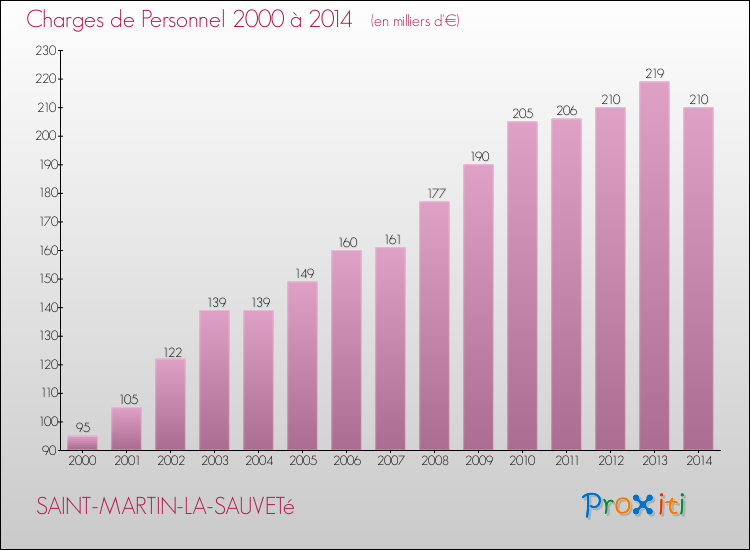 En 2014, à Saint-Martin-la-Sauveté, ce budget est en baisse de 4.11 % par rapport à 2013.