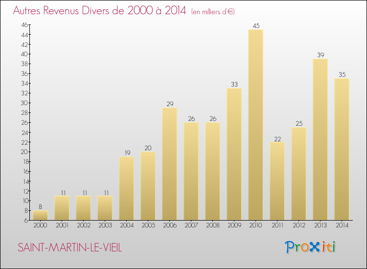 En 2014, à Saint-Martin-le-Vieil, ce budget est en baisse de 2.58 % par rapport à 2013.