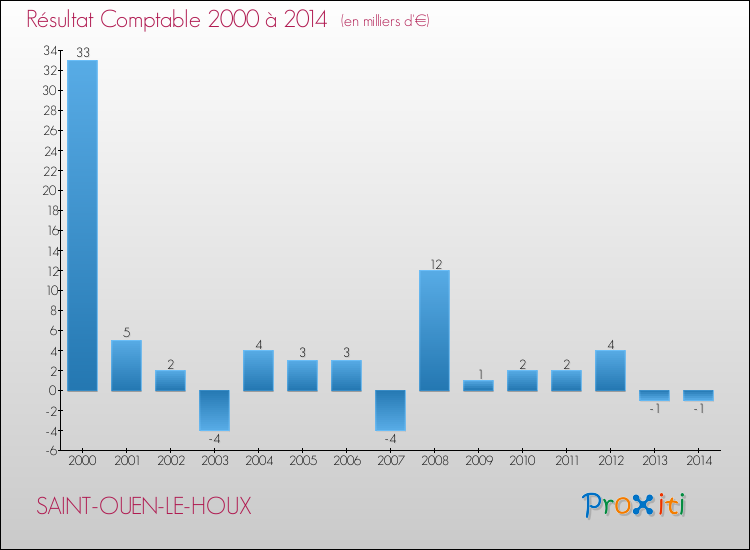 Le résultat comptable de la commune de Saint-Ouen-le-Houx s'établissait ainsi à : -1 000 € fin 2014 (recettes-dépenses).