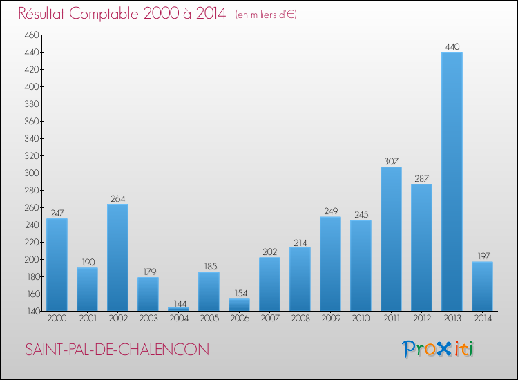 Le résultat comptable de la commune de Saint-Pal-de-Chalencon s'établissait ainsi à : + 197 000 € fin 2014.