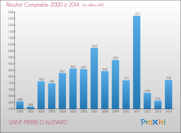 Le résultat comptable de la commune de Saint-Pierre-d'Allevard s'établissait ainsi à : + 774 000 € fin 2014.