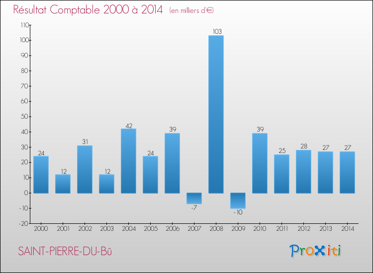 Le résultat comptable de la commune de Saint-Pierre-du-Bû s'établissait ainsi à : + 27 000 € fin 2014.