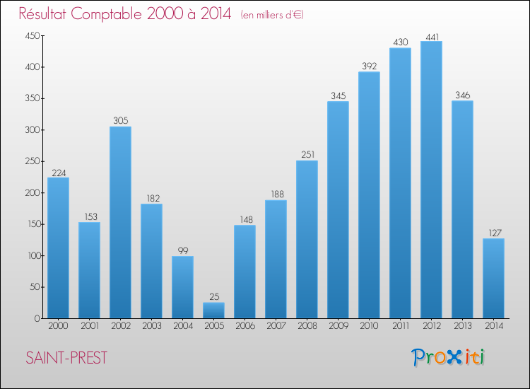 Evolution du résultat comptable pour SAINT-PREST de 2000 à 2014