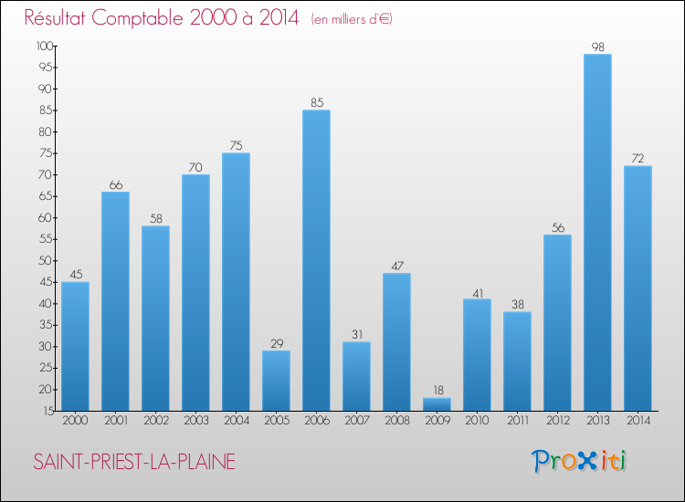Le résultat comptable de la commune de Saint-Priest-la-Plaine s'établissait ainsi à : + 72 000 € fin 2014.